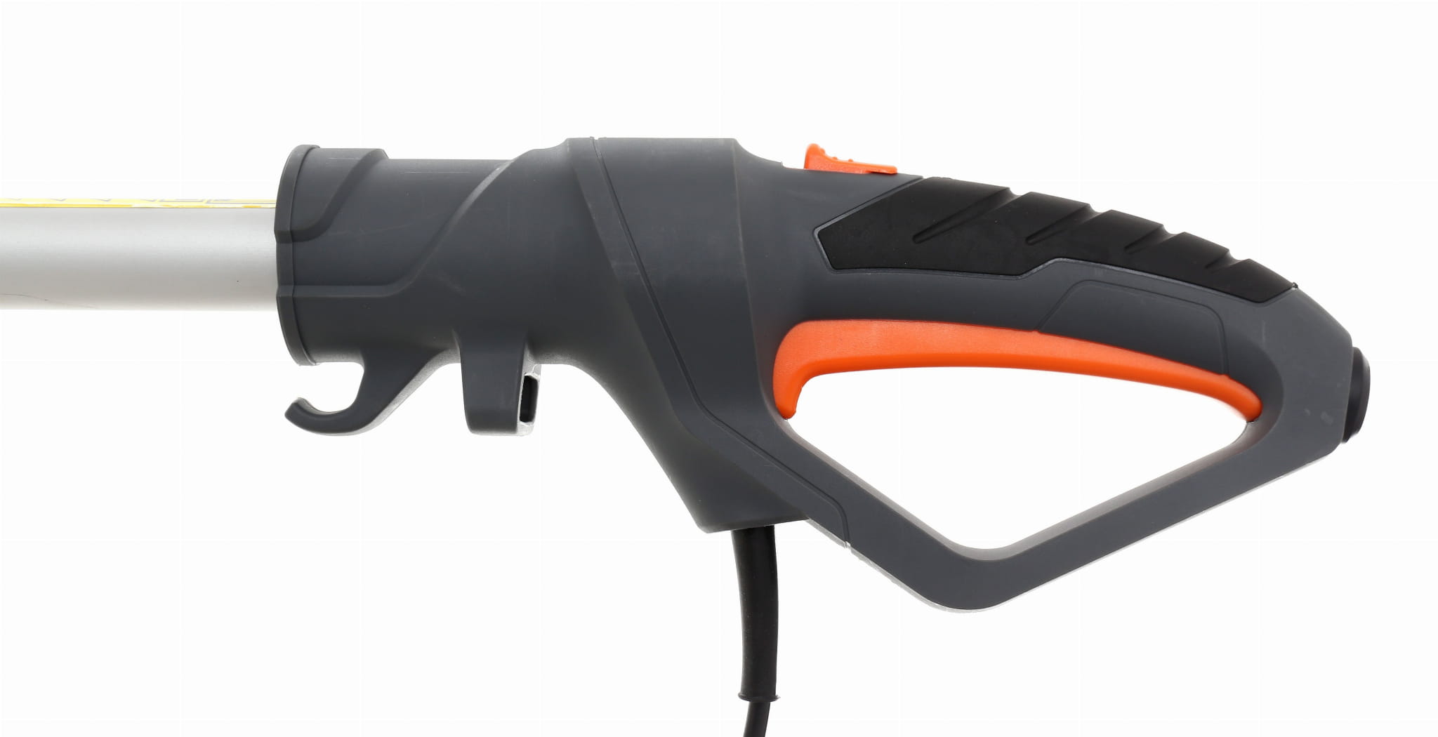 Komfort pracy użytkownika gwarantuje niewielka waga urządzenia, wysięgnik, możliwość regulacji kąta oraz zabezpieczenia- osłony, która chroni przed elementem tnącym, dłonie osoby obsługującej.