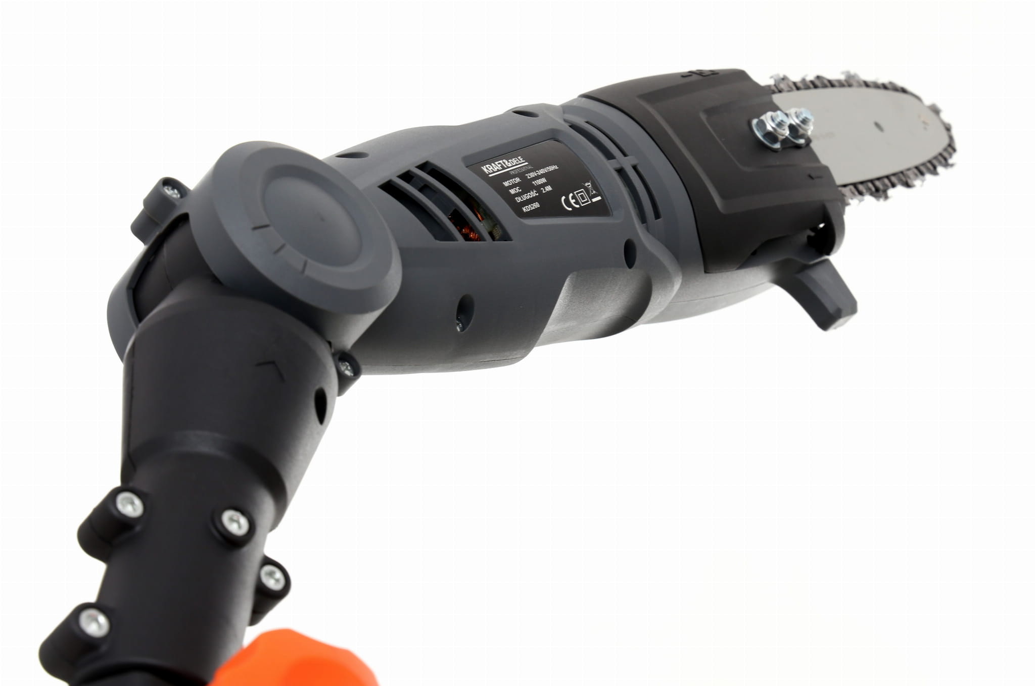 Pilarka elektryczna tnie drewno i gałęzie za pomocą łańcucha 3/8" umieszczonego na prowadnicy 8", przesuwającego się z prędkością wynoszącą do 11 m/s. Łańcuch jest wprowadzany w ruch zębatka napędową za pomocą silnika zasilanego prądem sieciowym. Wysięgnik umożliwia dostęp do gałęzi położonych nawet 2,4 m nad poziomem podłoża.