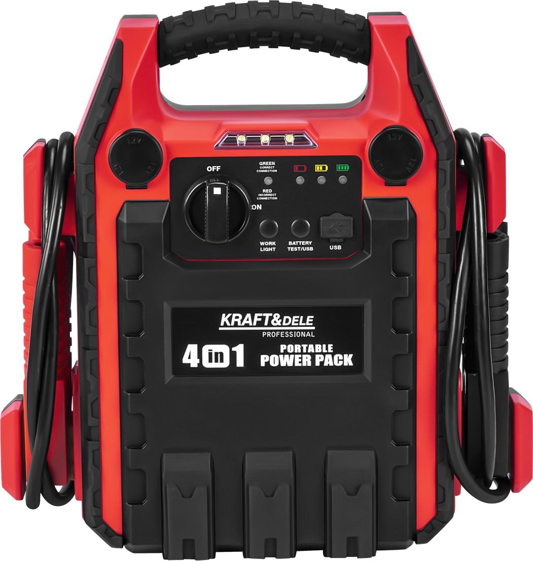 Urządzenie wielofunkcyjne KD5346 to kompaktowe, a zarazem niezwykle wydajne narzędzie stworzone z myślą o kierowcach, którzy chcą być przygotowani na każdą sytuację. To prawdziwe centrum zasilania 4w1 – rozruch pojazdu, kompresor, źródło prądu i latarka – wszystko zamknięte w solidnej, przenośnej obudowie. Dzięki niemu możesz bezpiecznie uruchomić samochód, dopompować opony, naładować telefon czy oświetlić miejsce pracy – niezależnie od warunków i pory dnia.