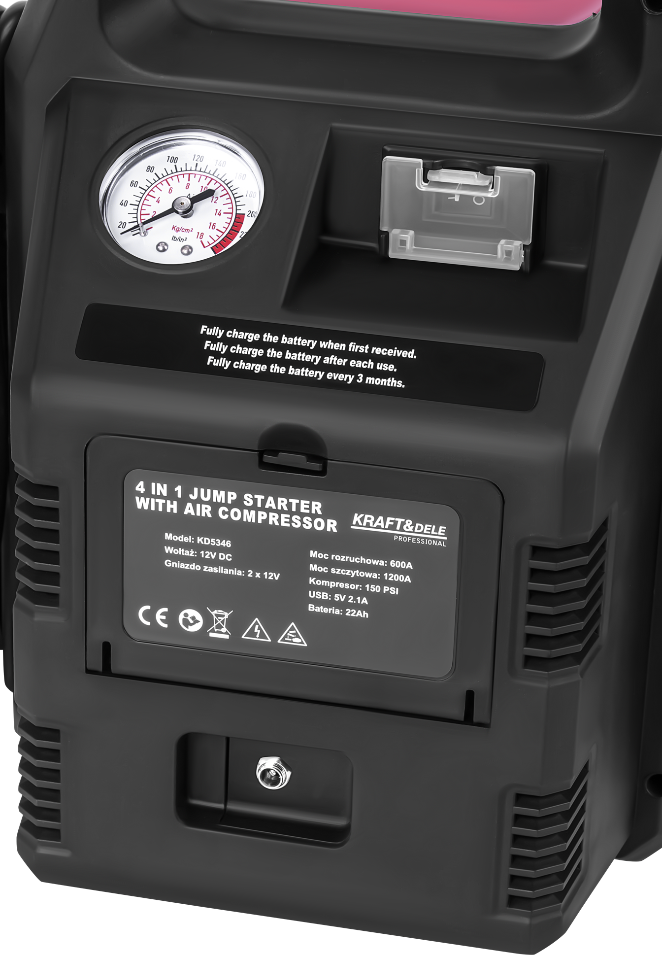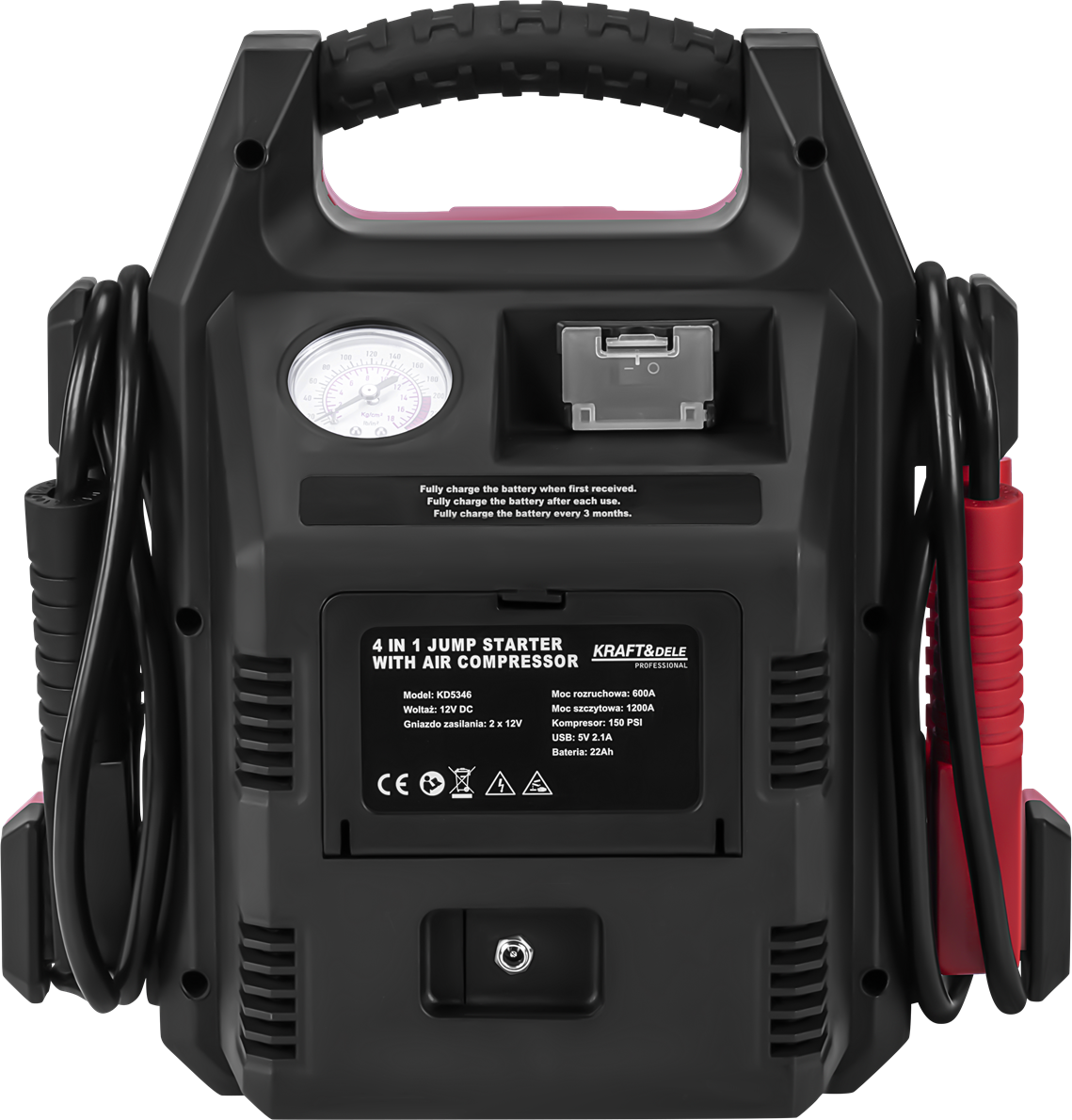 jump starter; rozruch samochodu; booster 4w1; powerbank samochodowy; kompresor z jump starterem; KD5346; urządzenie rozruchowe; jump starter z kompresorem; wielofunkcyjne urządzenie 4w1;