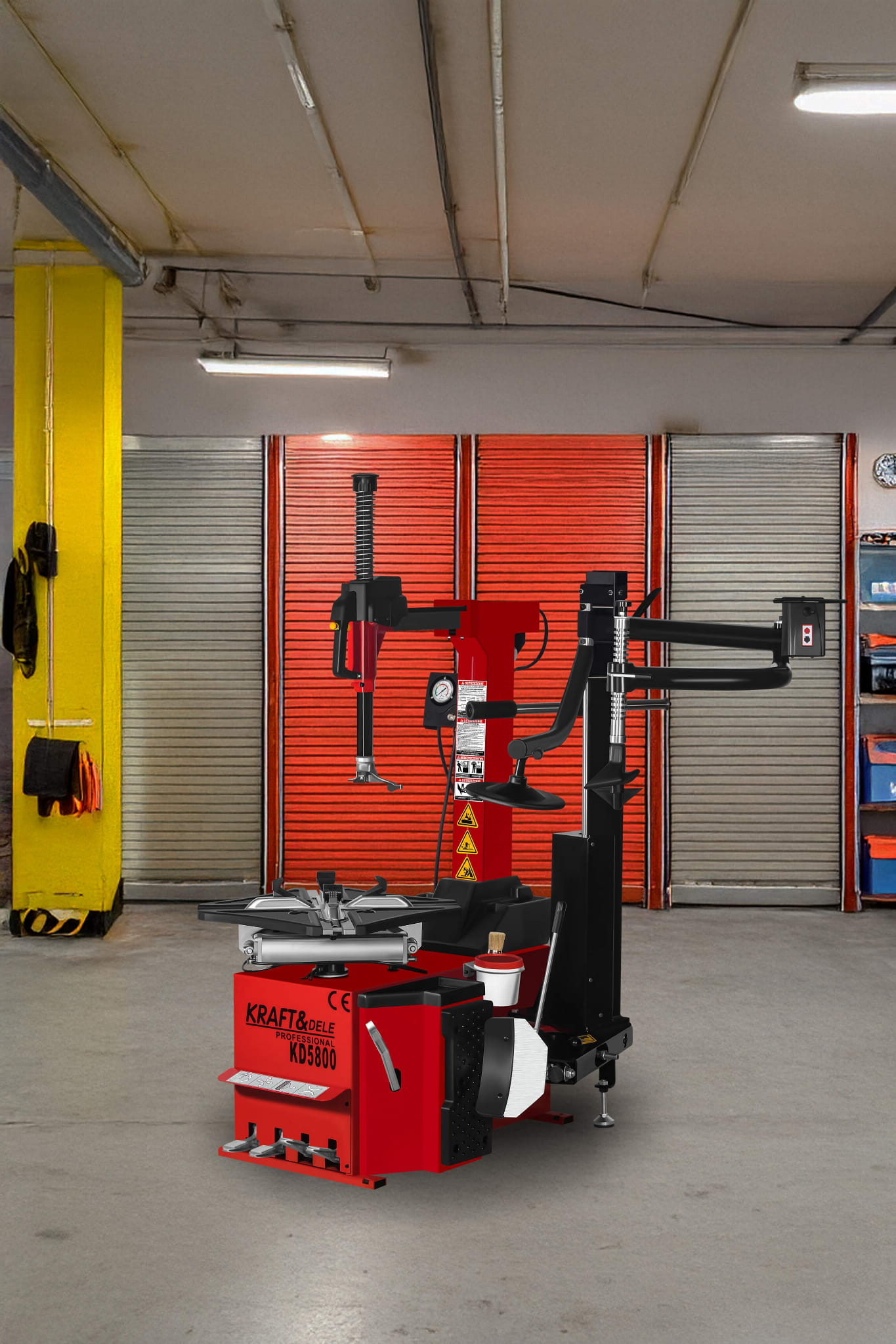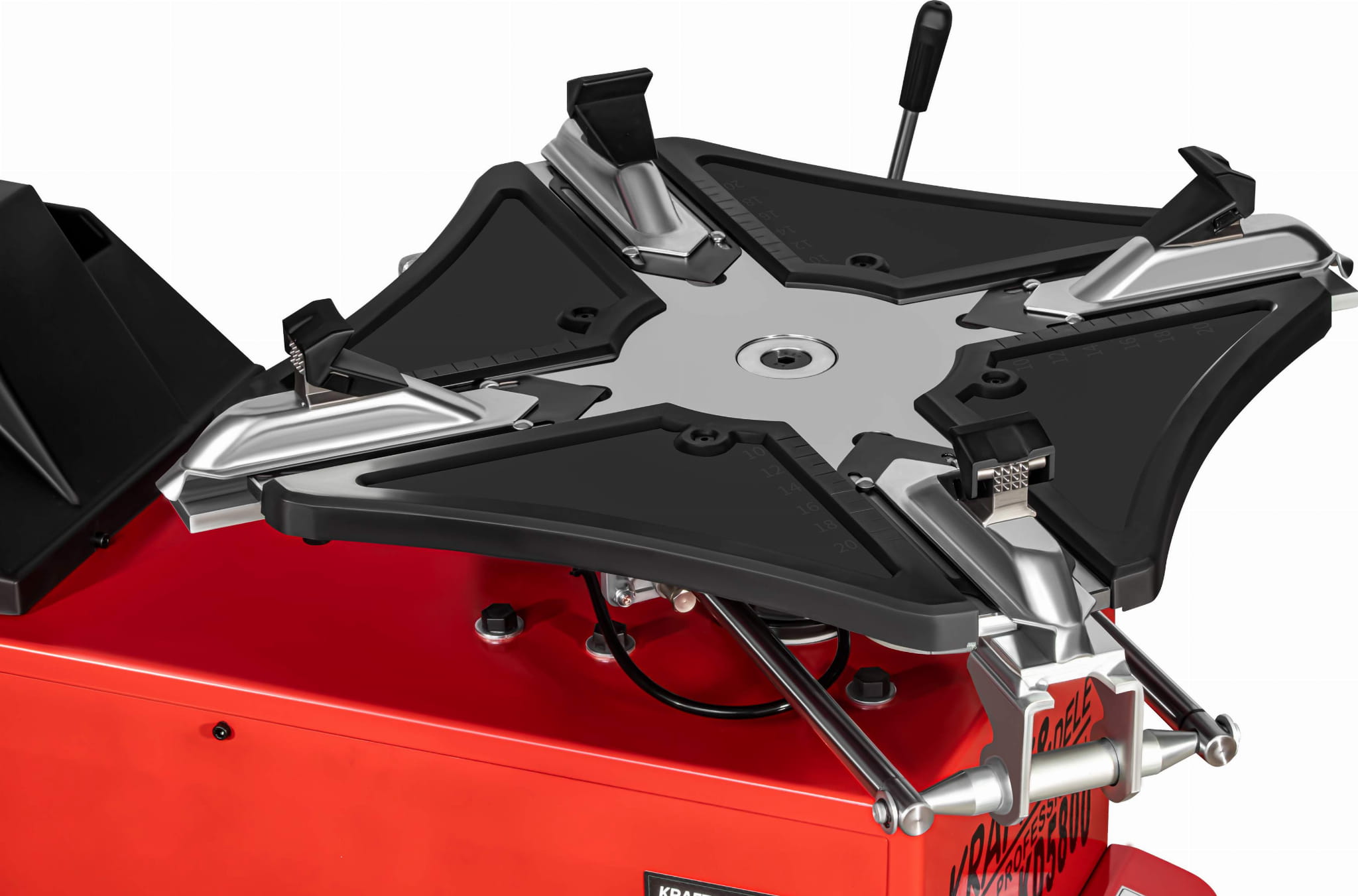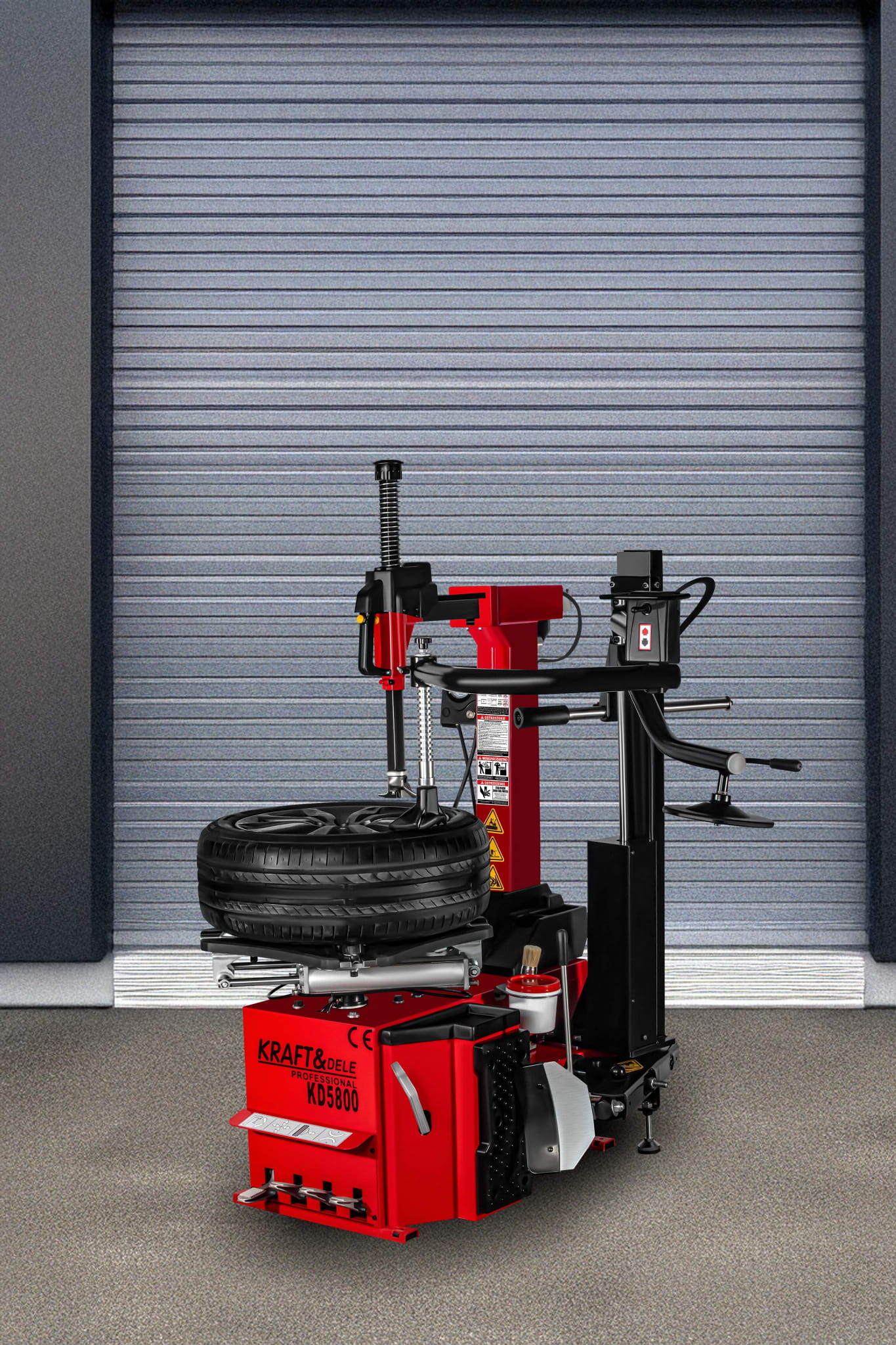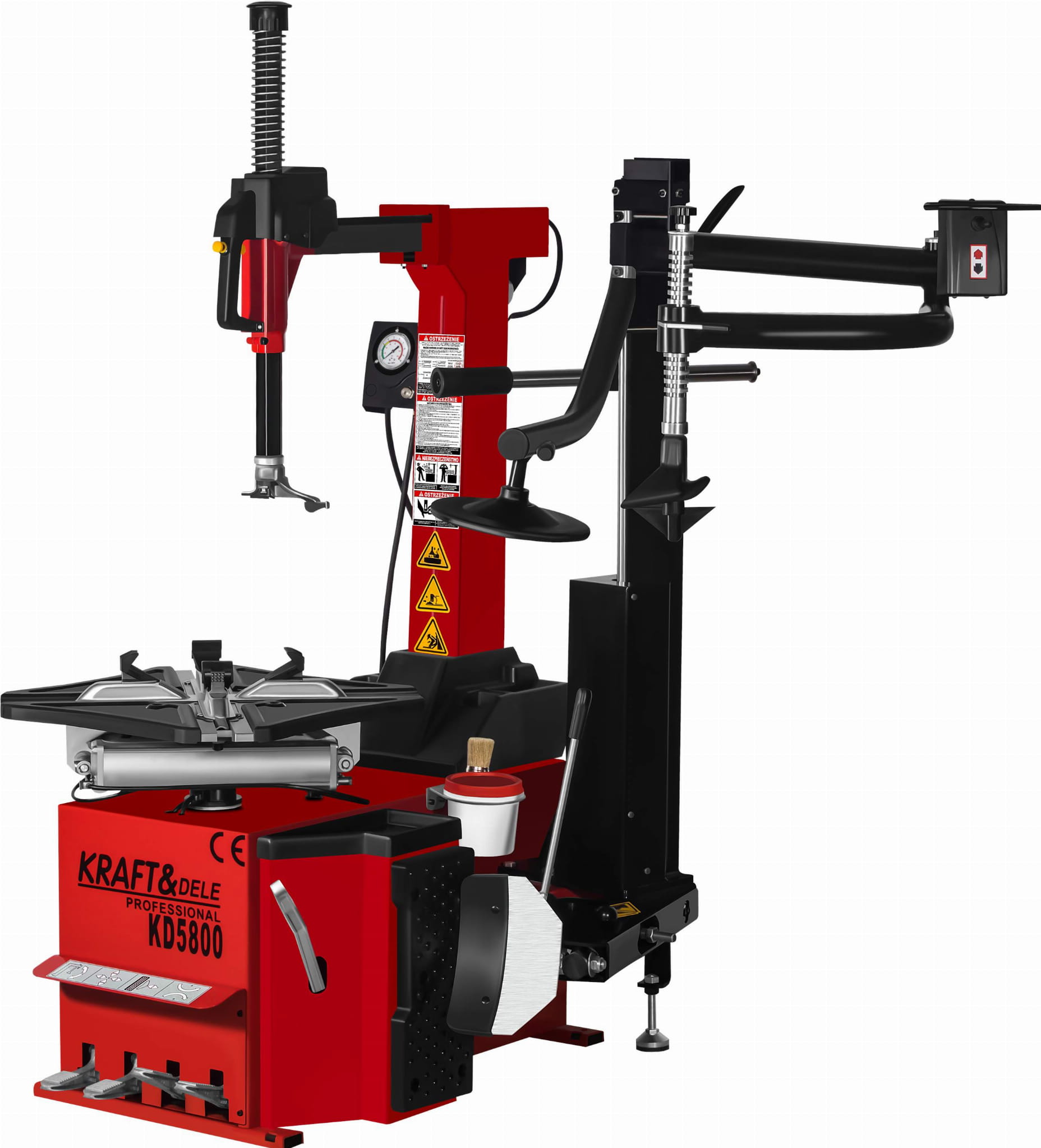 KD5800 to profesjonalna automatyczna montażownica do opon marki KRAFT&DELE, zaprojektowana z myślą o intensywnej eksploatacji w warsztatach samochodowych oraz serwisach wulkanizacyjnych. Urządzenie łączy solidną konstrukcję z nowoczesnymi rozwiązaniami, zapewniając wysoką wydajność pracy oraz komfort obsługi nawet przy wymagających kołach. Ergonomiczne pedały sterujące umożliwiają wygodną i precyzyjną obsługę montażownicy bez użycia rąk. Każdy pedał odpowiada za inną funkcję urządzenia, co pozwala na płynną i efektywną pracę podczas montażu i demontażu opon. Maszyna ma wbudowane zawieszenie na kubek ze smarem montażowym.