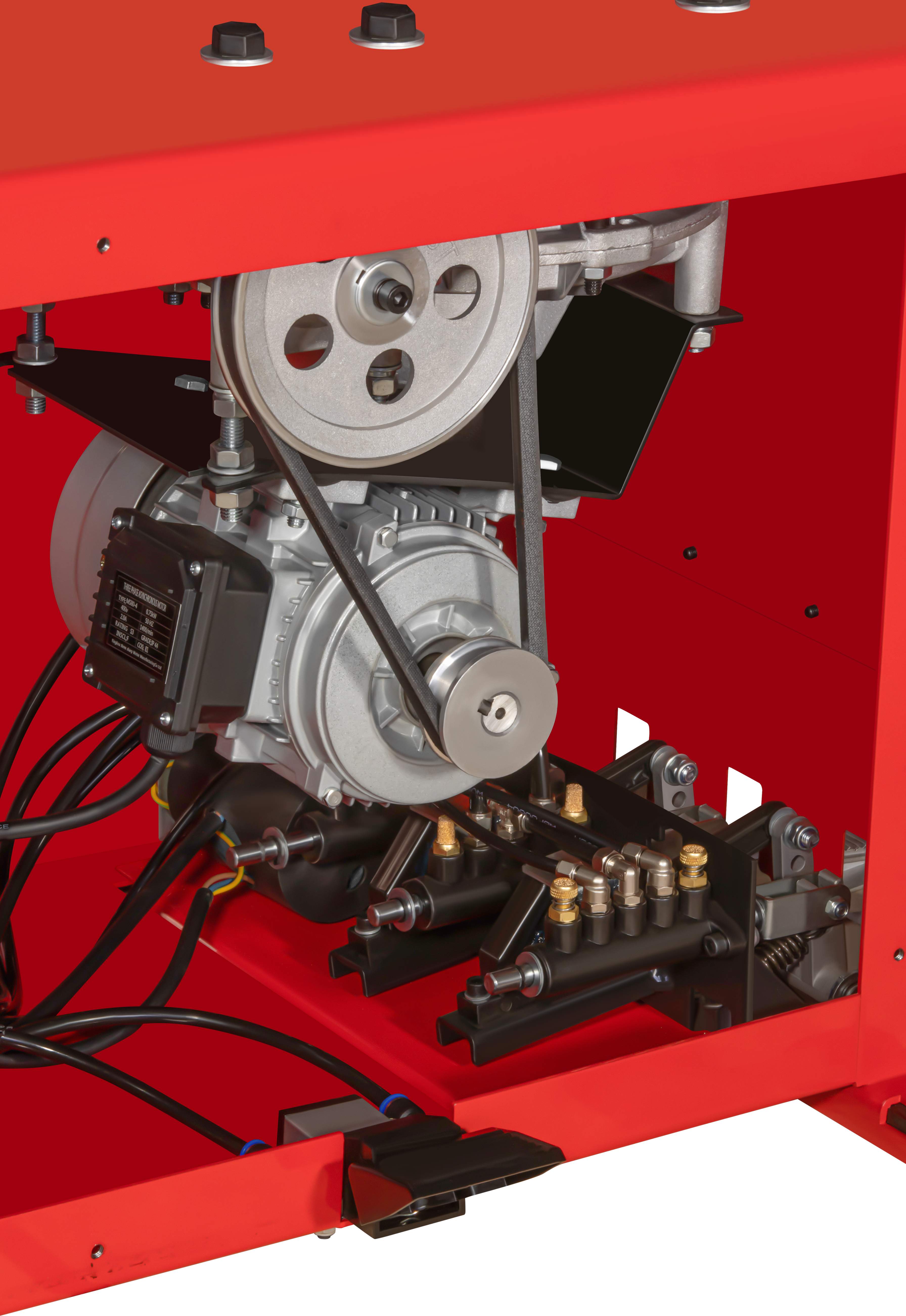 Urządzenie posiada zintegrowany układ przygotowania powietrza z filtrem i reduktorem, co wpływa na trwałość komponentów oraz stabilność działania. Dodatkowo montażownica wyposażona jest w system pompowania opon, schowki na akcesoria oraz elementy ochronne zapobiegające uszkodzeniom felg. Całość została zaprojektowana z myślą o intensywnej eksploatacji i niezawodności w codziennej pracy warsztatowej.