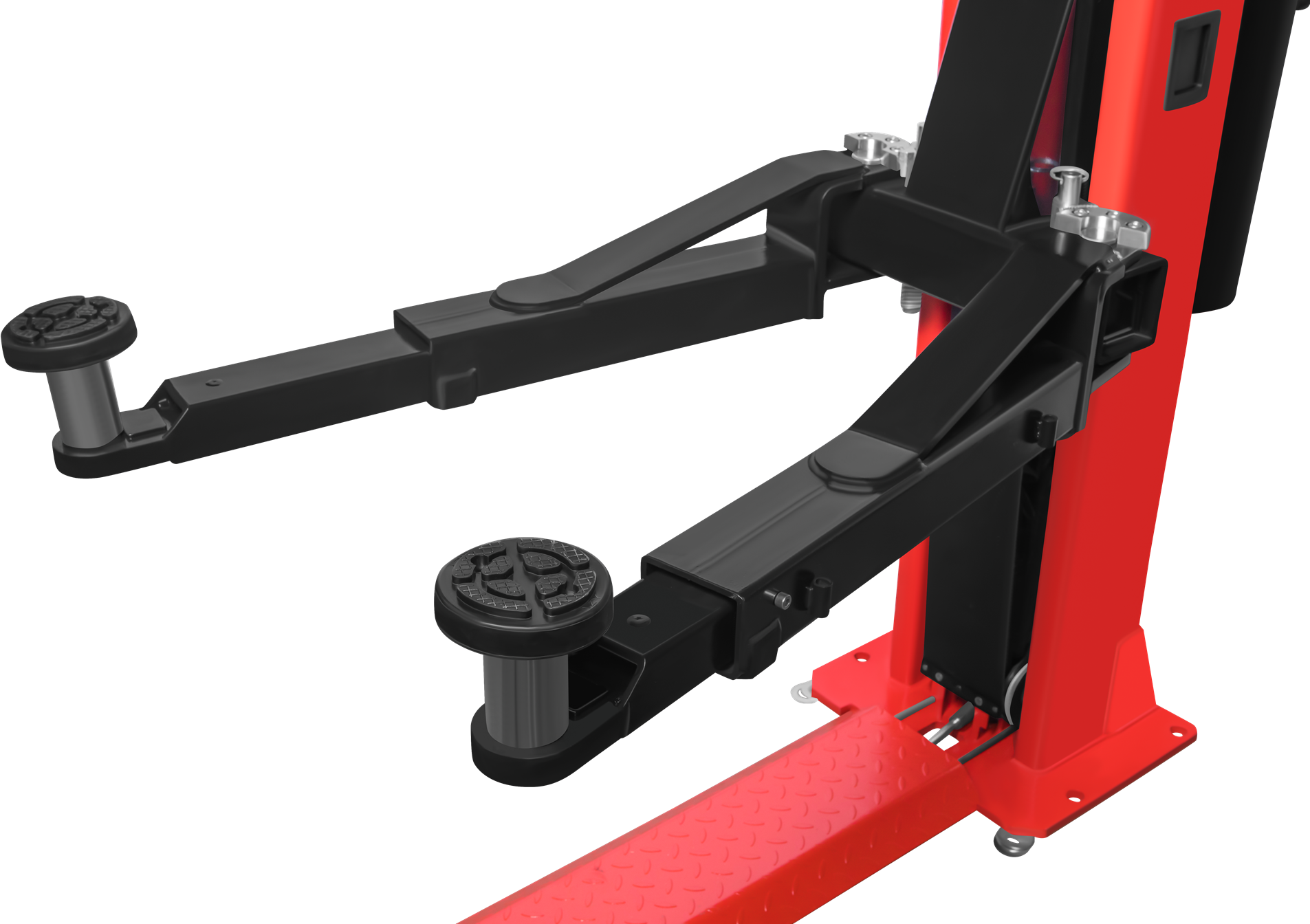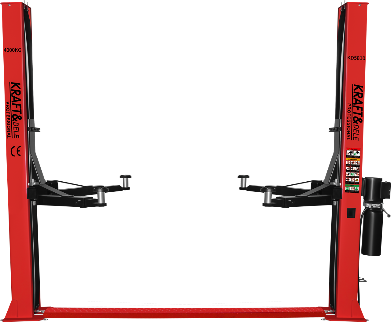 Model KD5810 oferuje udźwig do 4000 kg oraz zasilanie trójfazowe 400 V przy mocy silnika 2,2 kW. Asymetryczne, 2-stopniowe ramiona umożliwiają precyzyjne ustawienie pojazdu i wygodny dostęp do podwozia. Zastosowanie kurtyn ochronnych na słupach, odbojów drzwiowych oraz solidnego łańcucha zwiększa bezpieczeństwo użytkowania. Szybki czas podnoszenia i opuszczania oraz niski poziom hałasu czynią podnośnik efektywnym i komfortowym narzędziem w codziennej pracy warsztatowej.