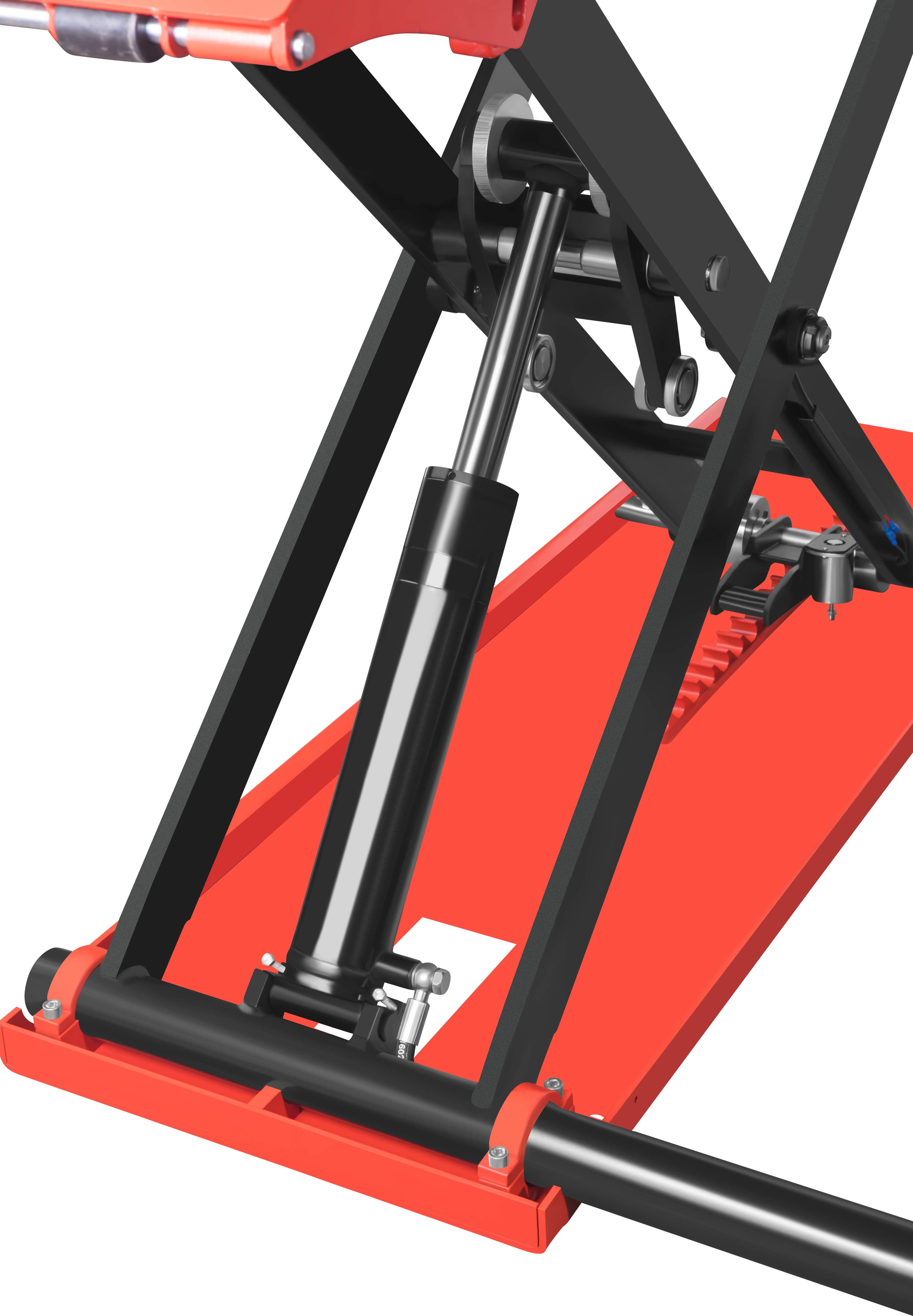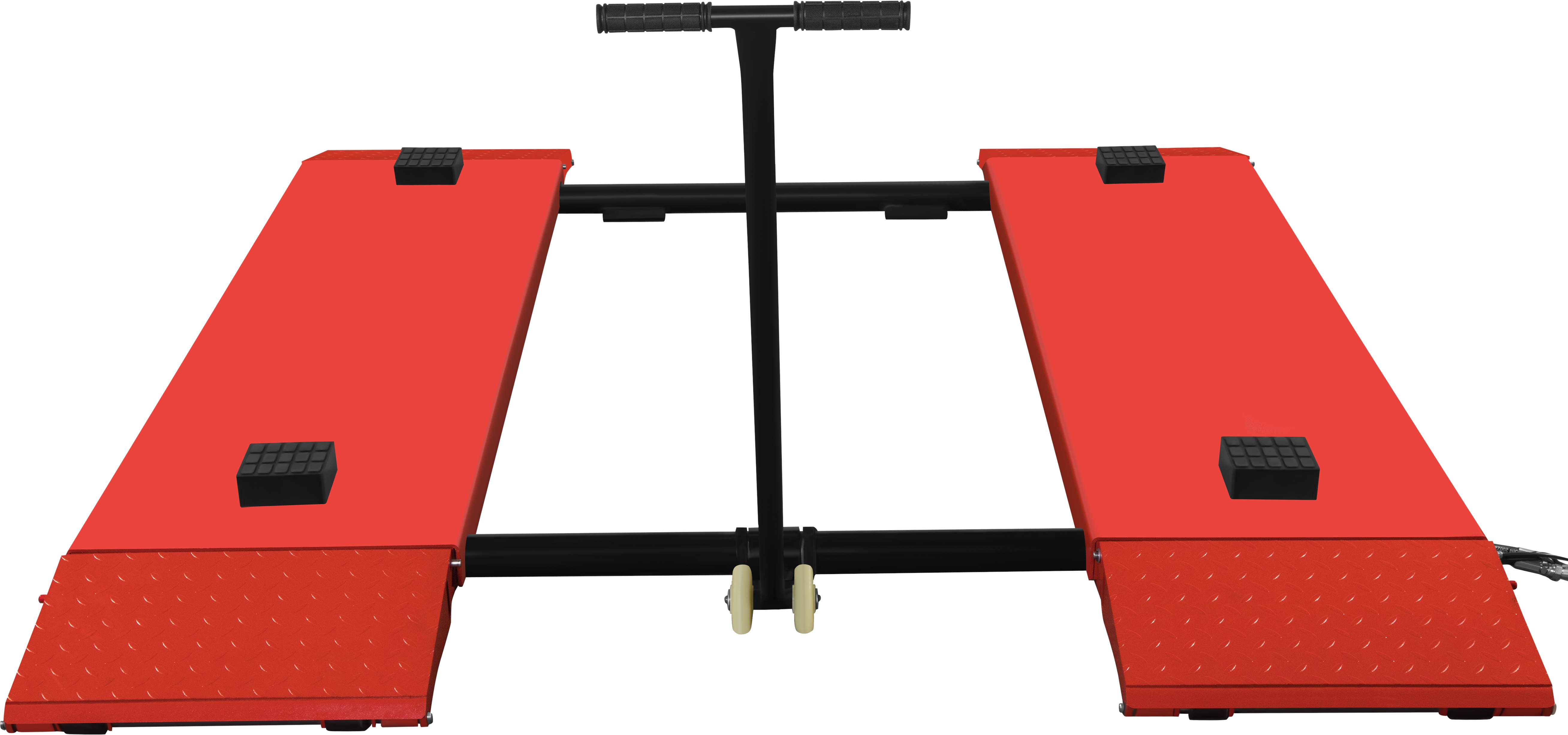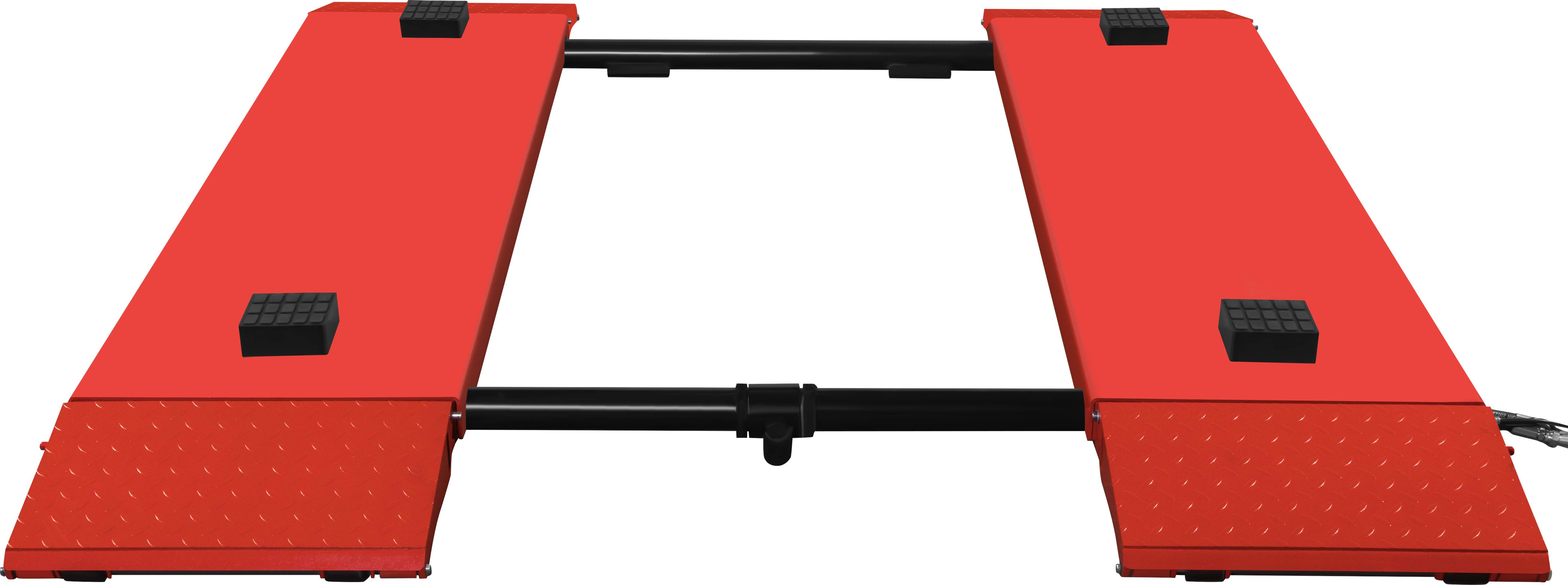 Urządzenie umożliwia szybkie i bezpieczne unoszenie pojazdów do wysokości 1200 mm, zapewniając wygodny dostęp do podwozia i elementów zawieszenia. Stabilna konstrukcja nożycowa, solidne platformy najazdowe oraz gumowe podkładki robocze zwiększają bezpieczeństwo pracy i pomagają pewnie oprzeć pojazd podczas podnoszenia. Regulowana długość platform umożliwia lepsze dopasowanie stanowiska do obsługiwanego auta.