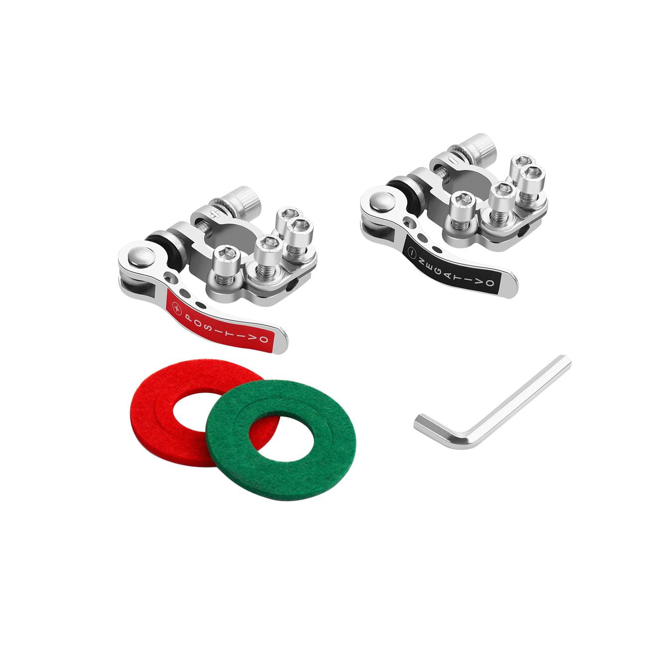 Klemy są zgodne z biegunowością PLUS/MINUS i spełniają unijne normy RoHS oraz EC. W zestawie znajduje się również klucz imbusowy do pewnego i trwałego zamocowania przewodu.