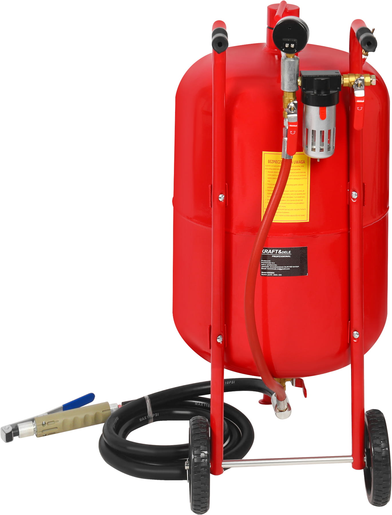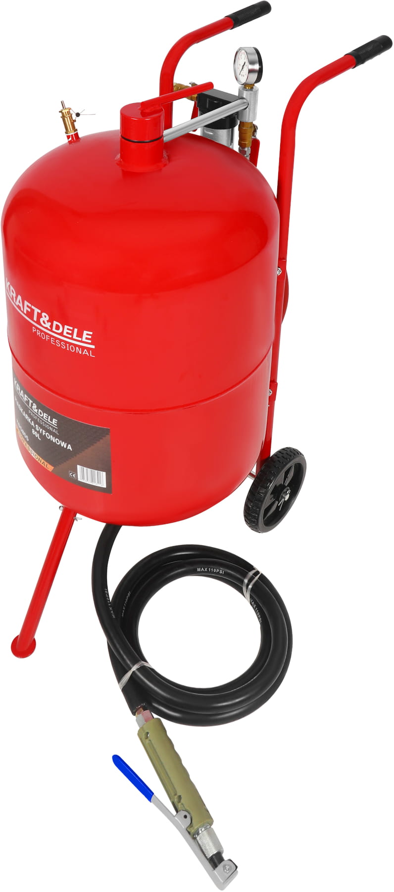 KD5855 to solidna i wydajna piaskarka syfonowa o pojemności 80 litrów, stworzona z myślą o wymagających pracach czyszczących i renowacyjnych. Wyposażona w duży, czytelny manometr oraz solidny uchwyt, zapewnia komfort i precyzję podczas pracy.