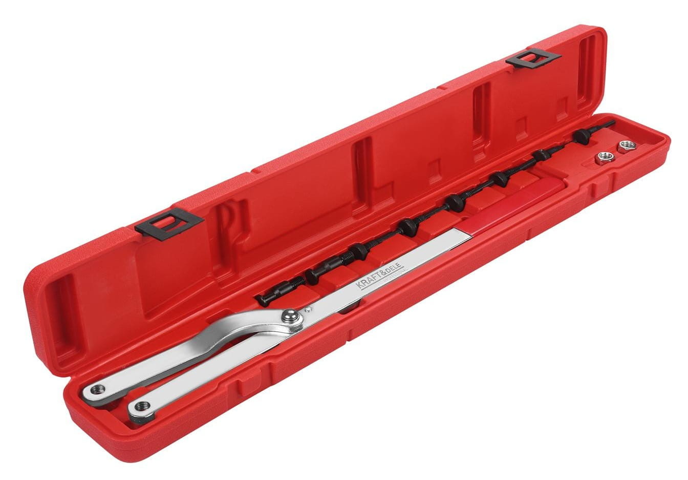 KD5985 to profesjonalny klucz do napinania kół pasowych, zaprojektowany z myślą o uniwersalnym zastosowaniu w warsztatach samochodowych. Dzięki regulowanemu uchwytowi o długości 53 cm oraz szerokiemu zakresowi pracy 40–220 mm, klucz pasuje do większości modeli pojazdów dostępnych na rynku.