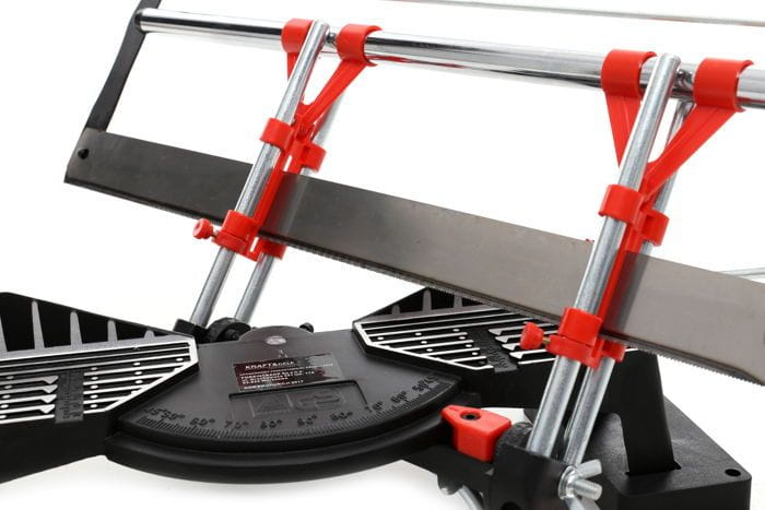 Ręczna piła ukośna do drewna marki Kraft&Dele model KD599. Przecinarka umożliwia cięcie drewna pod kątem nawet 90°.