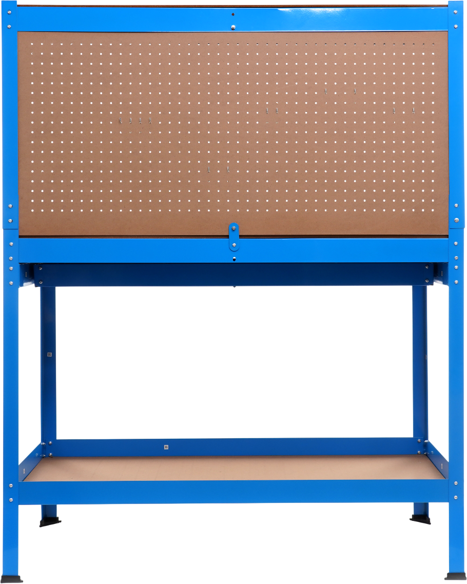 Dodatkowym atutem stołu jest ścianka narzędziowa umieszczona za blatem, która umożliwia montaż haczyków. Dzięki temu najczęściej używane narzędzia są zawsze pod ręką, co znacznie usprawnia i przyspiesza wykonywanie prac warsztatowych.