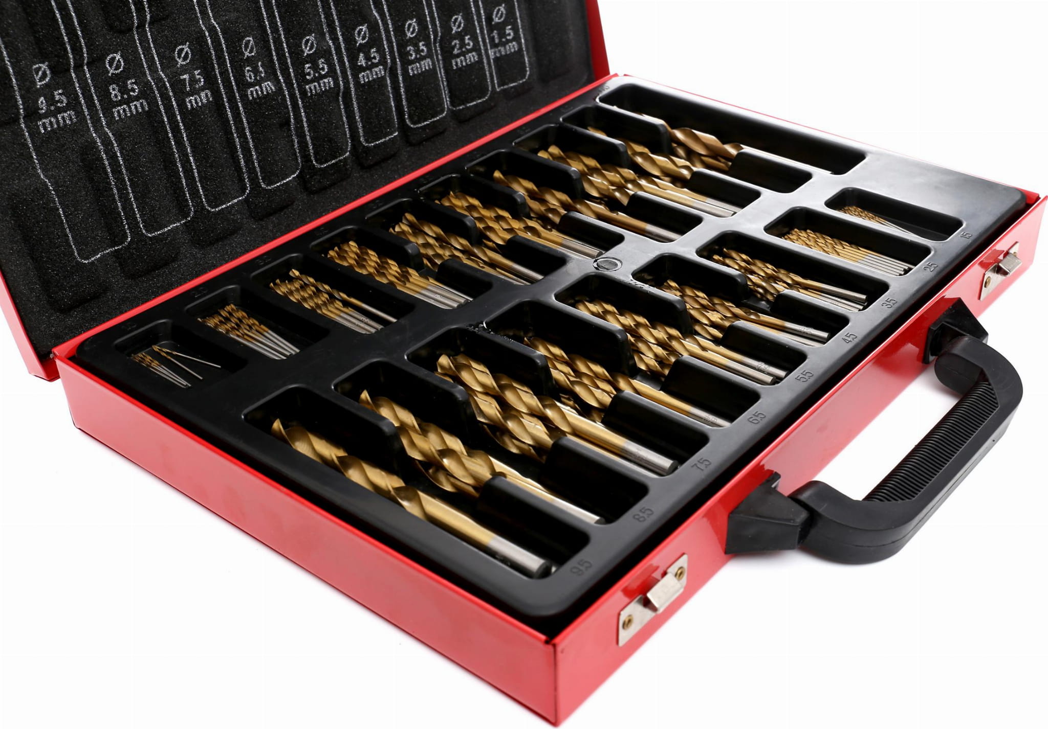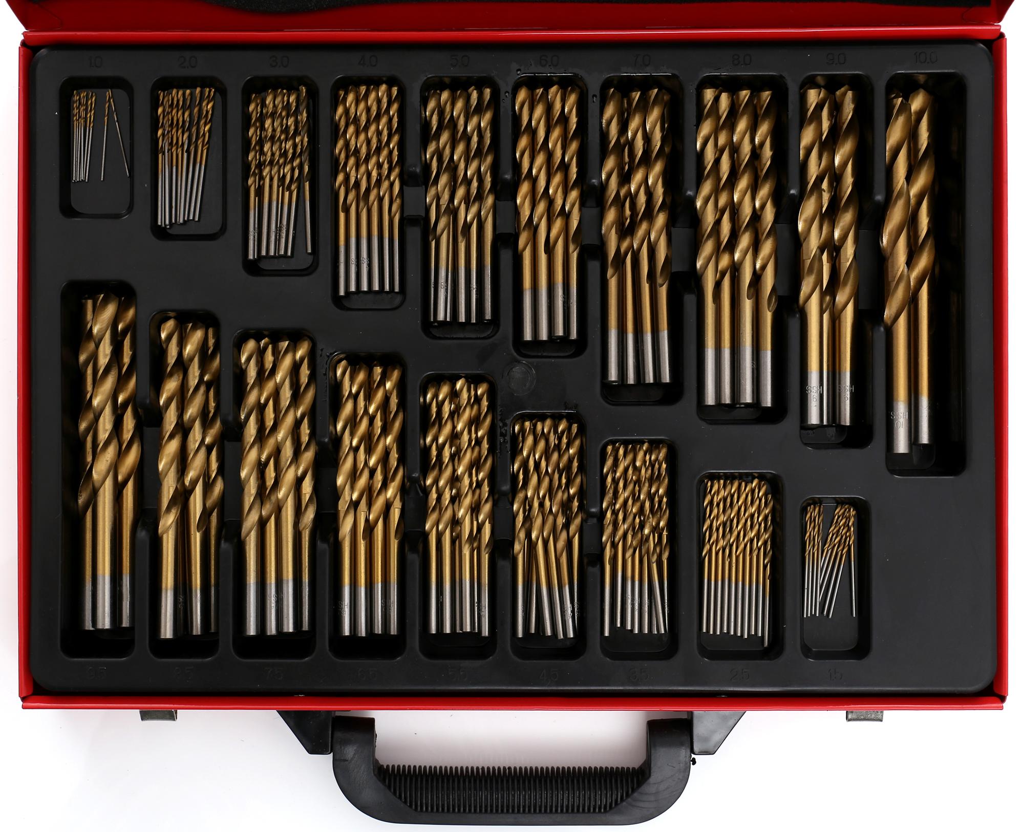 Wiertła do metalu; wiertła HSS; wiertła tytanowe; zestaw wierteł 170 szt; wiertła DIN338; komplet wierteł w walizce; wiertła do stali; wiertła warsztatowe; KD991;