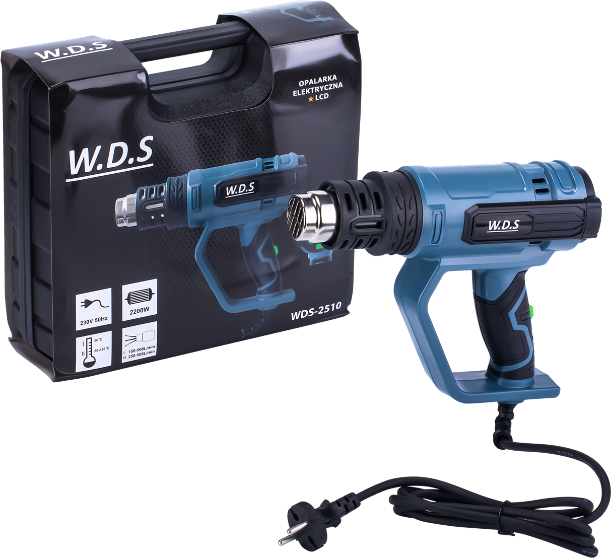 WDS2510 to nowoczesna opalarka elektryczna o mocy 2200W, zaprojektowana z myślą o wszechstronnych zastosowaniach w pracach remontowych, instalacyjnych i montażowych. Dzięki szerokiemu zakresowi regulacji temperatury oraz przepływu powietrza urządzenie pozwala na bardzo precyzyjne dopasowanie parametrów pracy do aktualnych potrzeb użytkownika.