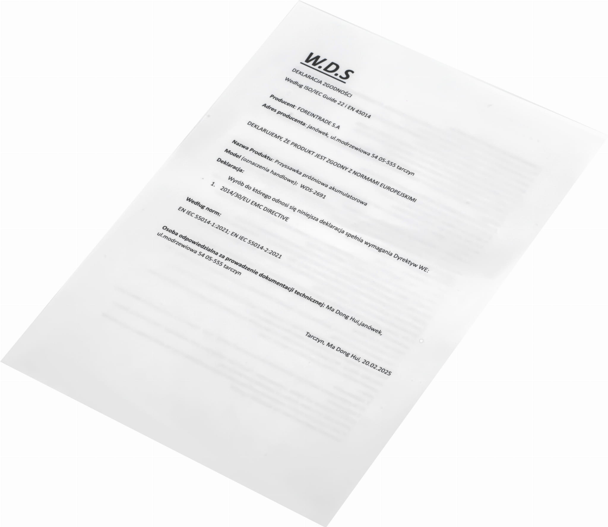 Dzięki wbudowanemu akumulatorowi o pojemności 2000 mAh przyssawka zapewnia pełną mobilność oraz wygodę użytkowania zarówno w warsztacie, jak i na placu budowy. Ładowanie przez nowoczesny port USB-C umożliwia szybkie i wygodne uzupełnienie energii. Moc 5W oraz napięcie 7,4V gwarantują stabilne działanie i utrzymanie odpowiedniego podciśnienia podczas pracy.