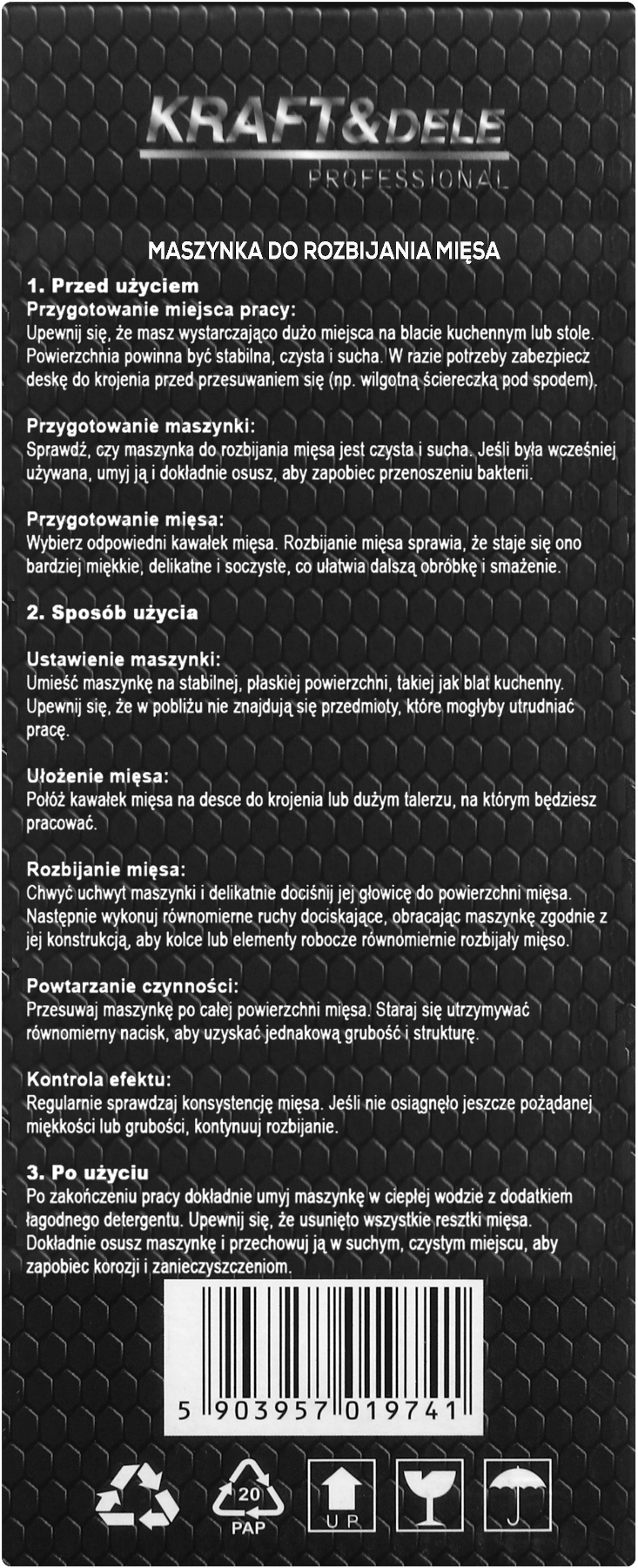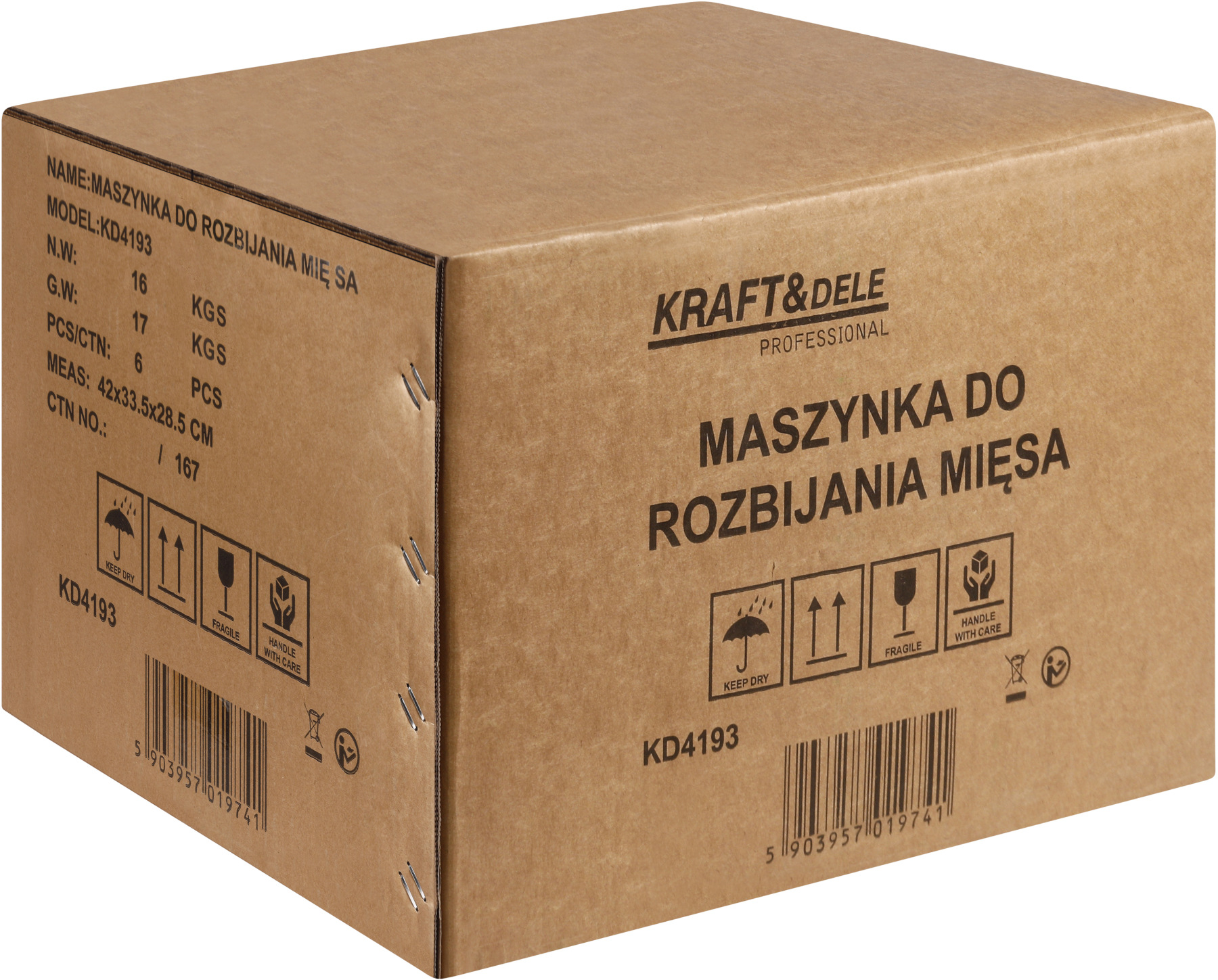 Maszynka do rozbijania mięsa KRAFT&DELE KD4193 to solidne i praktyczne urządzenie przeznaczone do przygotowywania kotletów, steków oraz innych potraw mięsnych. Dzięki zastosowaniu mechanizmu z dwoma żeliwnymi rolkami z kolcami skutecznie zmiękcza strukturę mięsa, ułatwiając jego dalszą obróbkę i poprawiając smak gotowych dań.