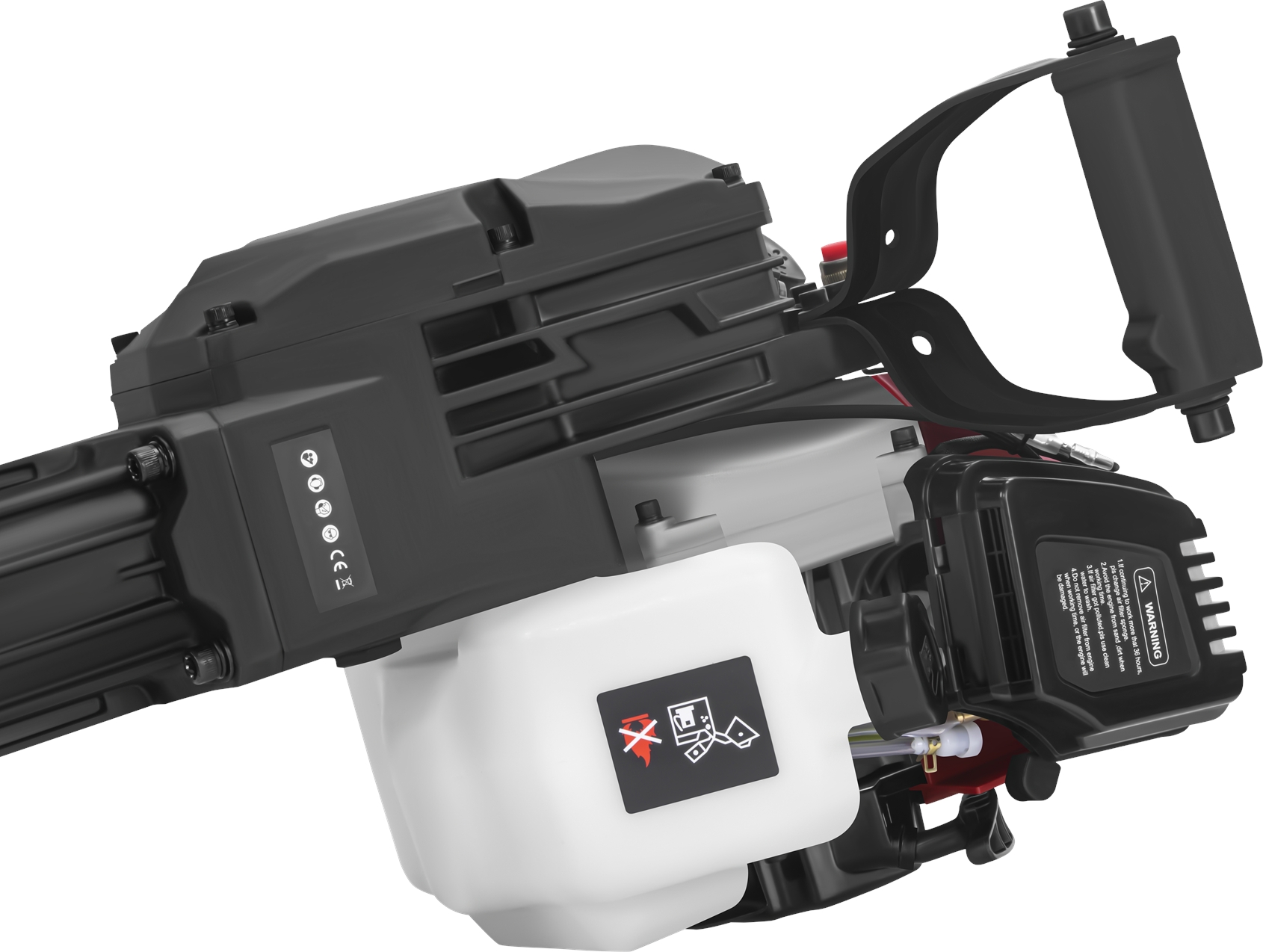 Wyposażony w silnik dwusuwowy o pojemności 52cc, młot zapewnia wysoką moc oraz dużą siłę uderzenia, co umożliwia skuteczne kruszenie, ubijanie i zagęszczanie różnych materiałów. Niska pojemność skokowa w połączeniu z niską wagą urządzenia sprawia, że młot jest poręczny, łatwy w manewrowaniu i mniej męczący podczas długotrwałej pracy.