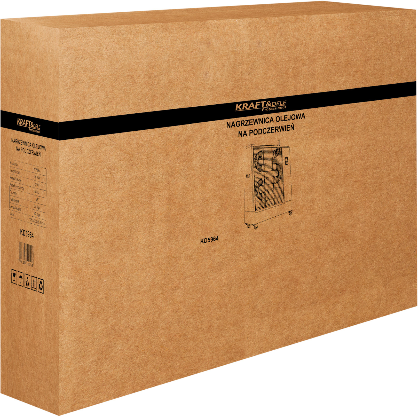 Nagrzewnica olejowa KD5964 marki KRAFT&DELE to wydajne urządzenie grzewcze przeznaczone do ogrzewania dużych przestrzeni roboczych takich jak warsztaty, hale produkcyjne, magazyny czy pomieszczenia gospodarcze. Dzięki zastosowaniu technologii promieniowania dalekiej podczerwieni ciepło kierowane jest bezpośrednio na wybrane obszary, zapewniając szybkie i komfortowe ogrzewanie.