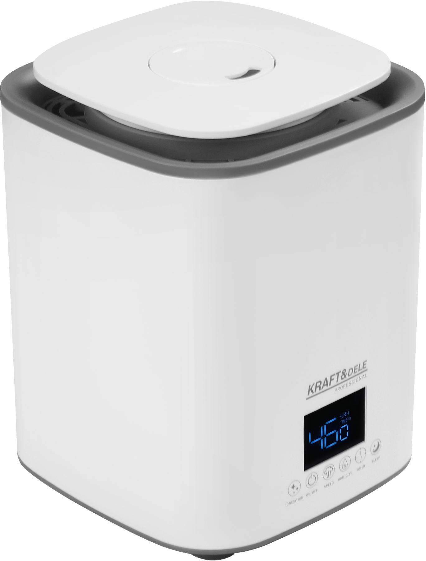 Model został wyposażony w dotykowy panel, wyświetlacz LED, pilot zdalnego sterowania, wbudowany higrometr, higrostat oraz termometr, dzięki czemu umożliwia łatwe dopasowanie pracy do aktualnych potrzeb. Nawilżacz oferuje 3 poziomy regulacji mgiełki, regulację wilgotności w zakresie od 40% do 90%, funkcję timera od 1 do 9 godzin, tryb uśpienia oraz automatyczne wyłączenie po wyczerpaniu się wody. Dodatkowym atutem jest możliwość stosowania olejków eterycznych lub zapachowych na bazie wody, co pozwala połączyć nawilżanie z relaksującą aromaterapią.