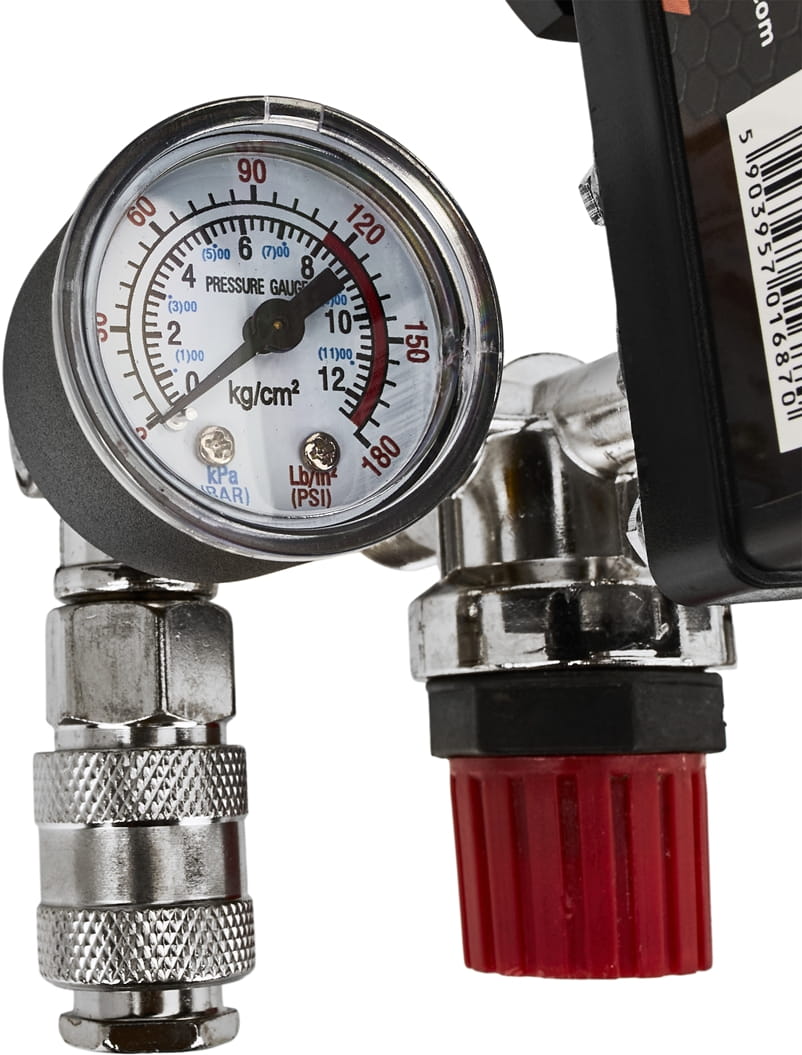 Urządzenie automatycznie załącza kompresor przy spadku ciśnienia oraz wyłącza go po osiągnięciu ustawionego poziomu. Dzięki temu kompresor pracuje efektywniej, zużywa mniej energii i zachowuje dłuższą żywotność. Presostat wyposażony został w wbudowane manometry umożliwiające stałą kontrolę ciśnienia w zbiorniku oraz ciśnienia wyjściowego (redukowanego), szybkozłączki ułatwiające podłączanie narzędzi pneumatycznych oraz zawór bezpieczeństwa chroniący układ przed nadmiernym wzrostem ciśnienia.