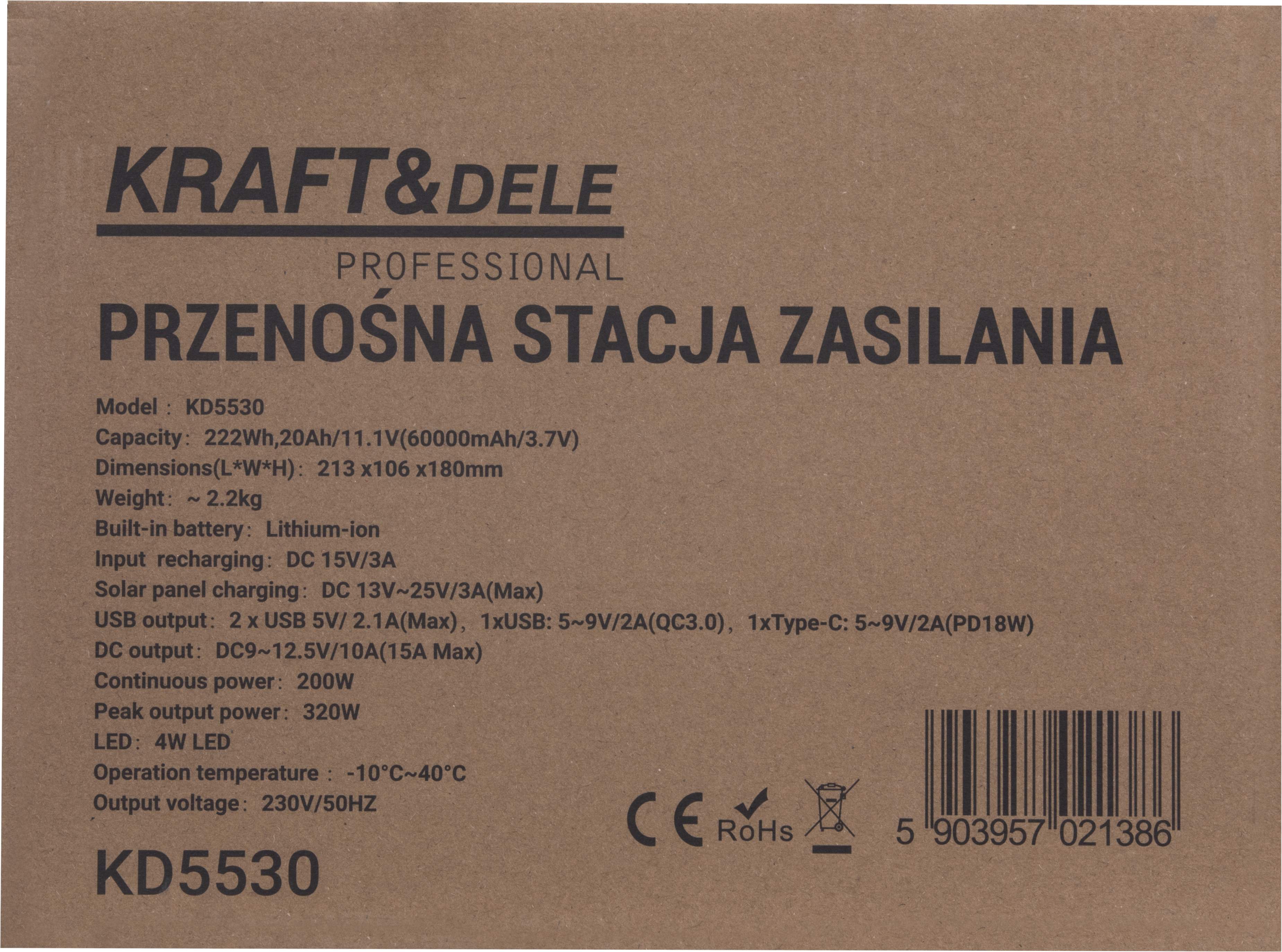 KD5530 to nowoczesna przenośna stacja zasilania marki KRAFT&DELE, która zapewnia niezależność energetyczną w każdych warunkach – zarówno podczas podróży, biwaków, pracy w terenie, jak i w sytuacjach awaryjnych. Kompaktowa konstrukcja oraz wygodny uchwyt sprawiają, że urządzenie można bez problemu zabrać ze sobą wszędzie tam, gdzie dostęp do prądu jest ograniczony.