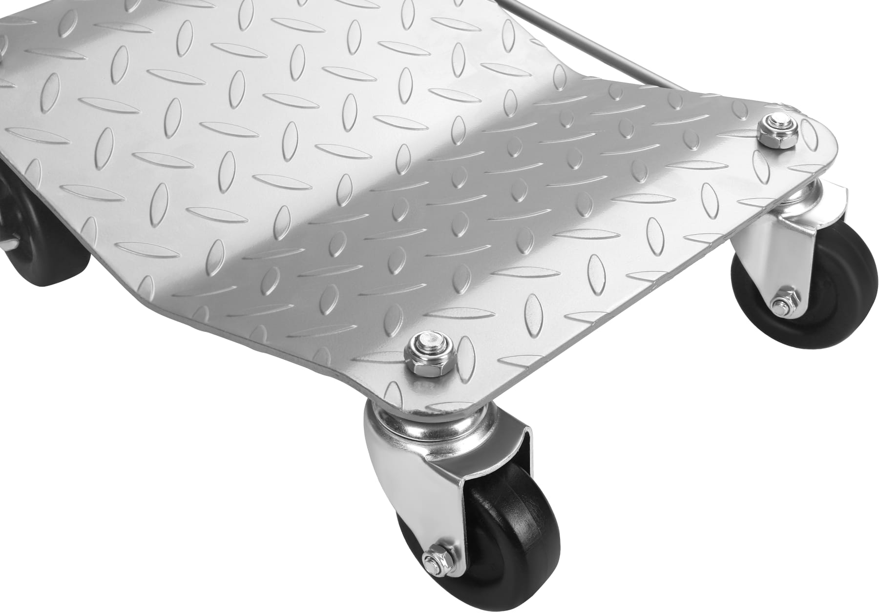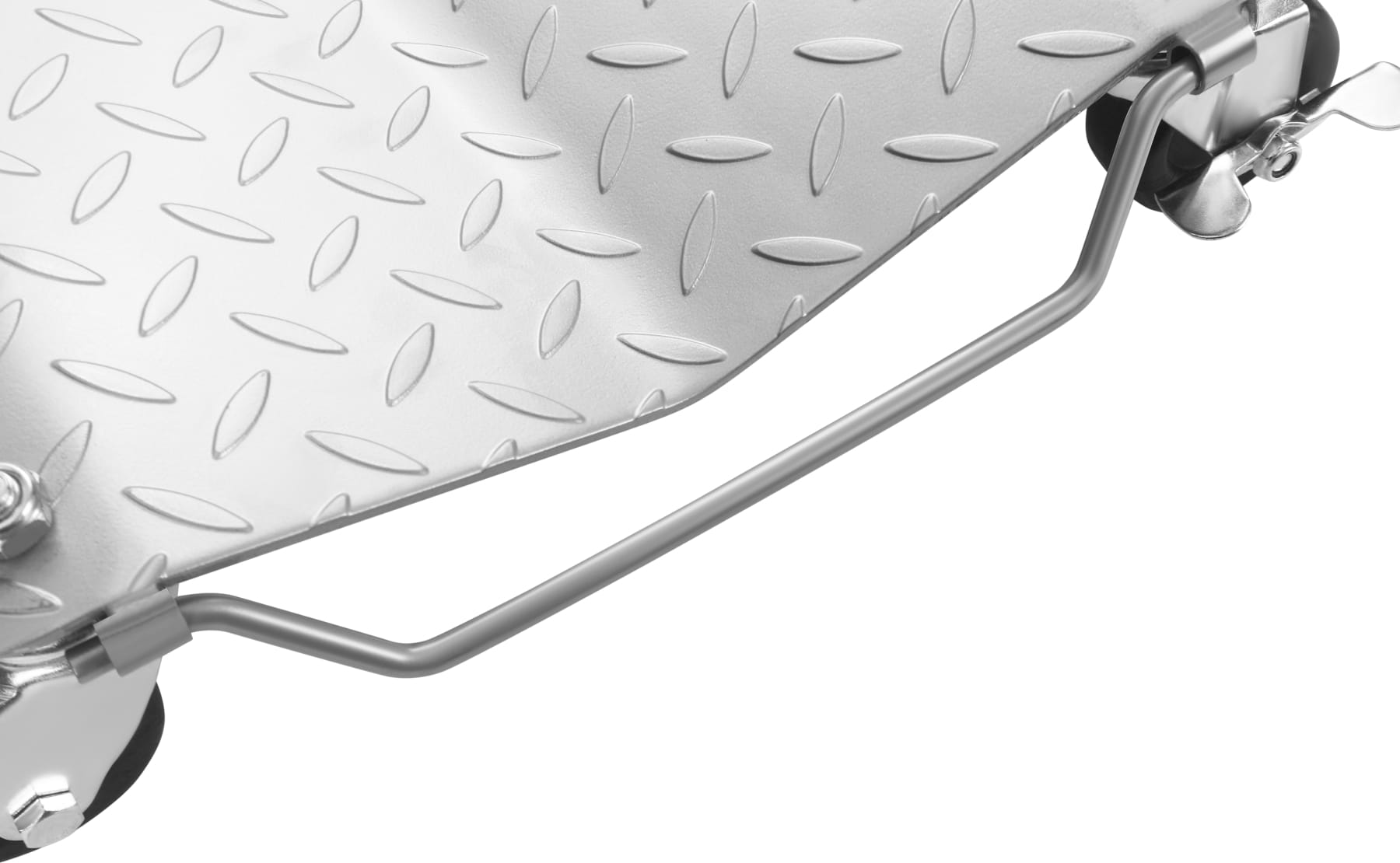 Każda rolka posiada udźwig aż 680 kg, co pozwala na transport bardzo ciężkich elementów. Wgłębiony kształt blatu minimalizuje ryzyko zsunięcia przewożonego towaru, zwiększając bezpieczeństwo pracy. Blaty wykonane zostały z wytrzymałej blachy ryflowanej, która poprawia przyczepność i stabilność ładunku.