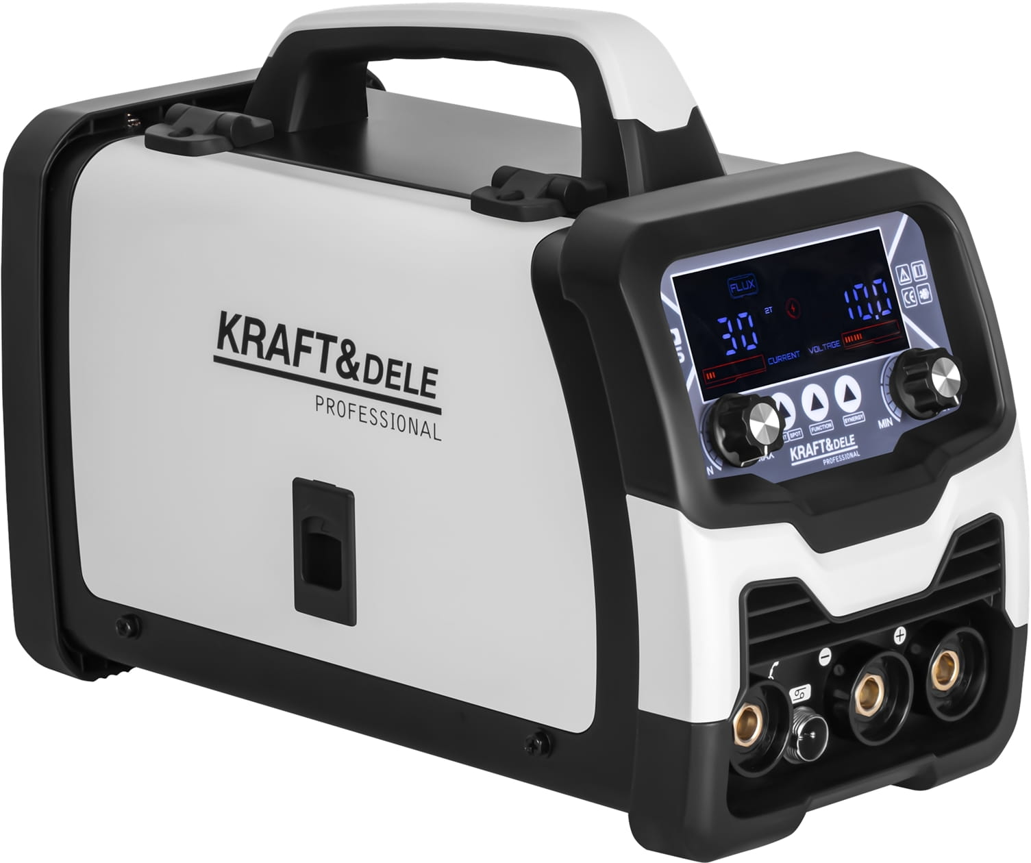 KD815 to nowoczesna spawarka inwertorowa marki KRAFT&DELE, przeznaczona do pracy metodami MIG FLUX, MMA oraz TIG. Urządzenie zostało zaprojektowane z myślą o użytkownikach, którzy oczekują wszechstronności, stabilnych parametrów pracy oraz wygodnej obsługi zarówno podczas prac warsztatowych, jak i naprawczych. Dzięki zastosowaniu technologii IGBT spawarka oferuje wysoką niezawodność, kompaktową konstrukcję oraz efektywne wykorzystanie energii.
