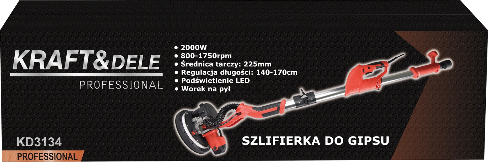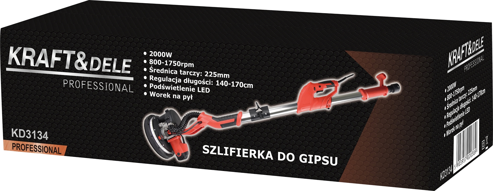 KD3134 to wydajna szlifierka do gipsu marki KRAFT&DELE, zaprojektowana z myślą o szlifowaniu ścian i sufitów, również w trudno dostępnych miejscach oraz na większych wysokościach. Dzięki teleskopowej konstrukcji oraz dużej średnicy tarczy urządzenie umożliwia szybkie i wygodne wyrównywanie powierzchni.