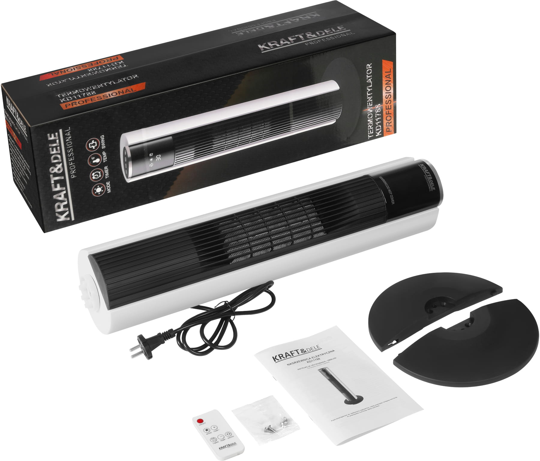 KD11788 marki KRAFT&DELE to nowoczesny termowentylator ceramiczny o mocy do 2000W, zaprojektowany z myślą o szybkim i równomiernym ogrzewaniu pomieszczeń domowych oraz biurowych. Smukła, stojąca konstrukcja w eleganckim biało-czarnym kolorze doskonale wpasuje się w każde wnętrze.