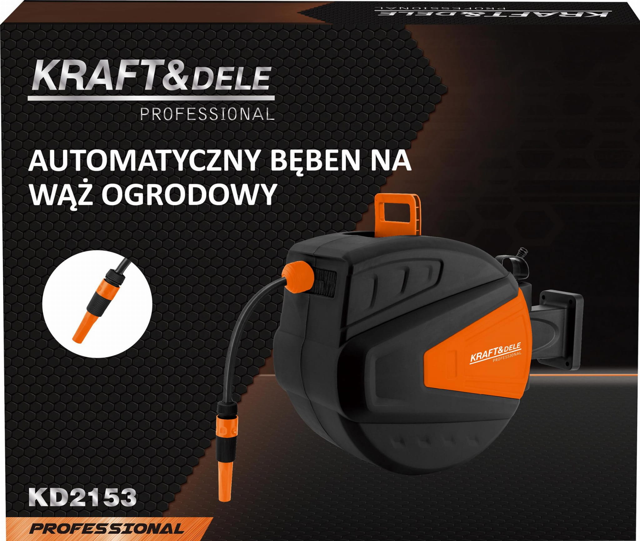 KD2153 to funkcjonalny automatyczny bęben na wąż ogrodowy marki KRAFT&DELE, zaprojektowany z myślą o wygodnym i uporządkowanym użytkowaniu w ogrodzie. System automatycznego zwijania umożliwia szybkie schowanie węża bez splątań i załamań, co znacząco poprawia komfort codziennej pracy.