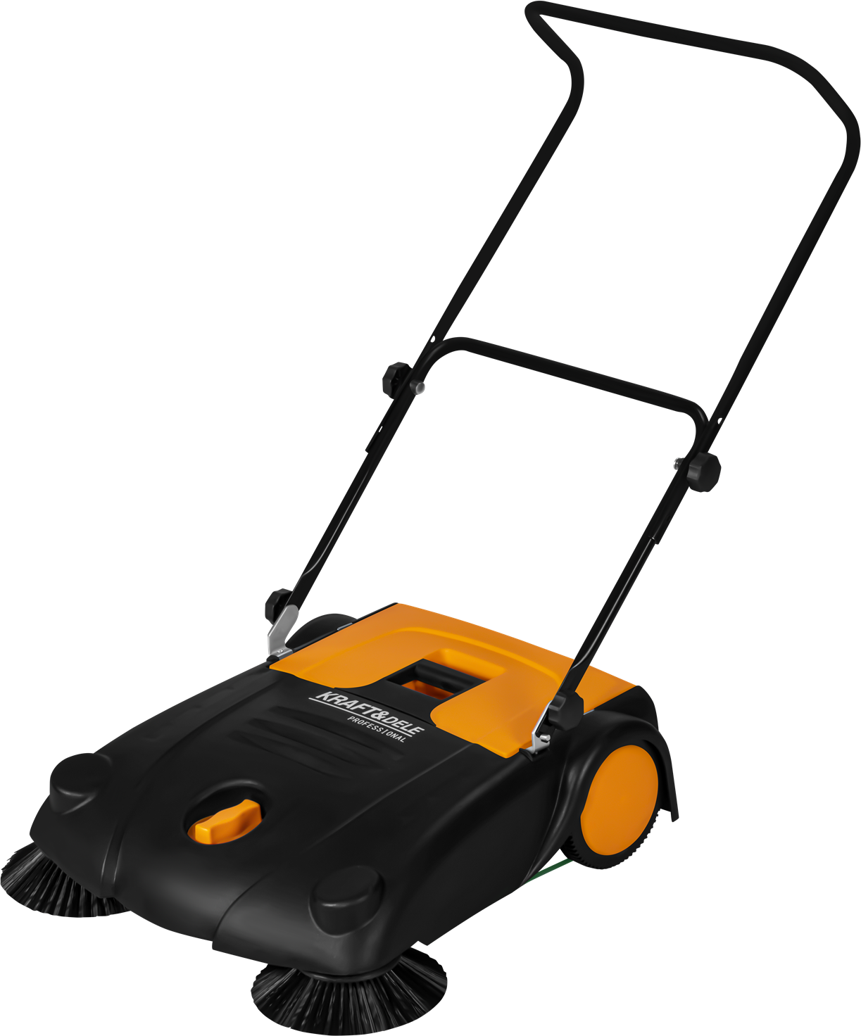Zamiatarka pracuje w pełni mechanicznie — energię do pracy szczotek pozyskuje z ruchu kół, a zalecana prędkość robocza 5 km/h zapewnia jej maksymalną wydajność. Podwójny system szczotek bocznych oraz centralny moduł zbierający skutecznie usuwają piasek, liście, pył, żwir i inne zanieczyszczenia. Model KD5128 wyposażono także w wygodną regulację wysokości, solidny uchwyt oraz kompaktową konstrukcję, która umożliwia łatwe manewrowanie w wąskich przestrzeniach.
