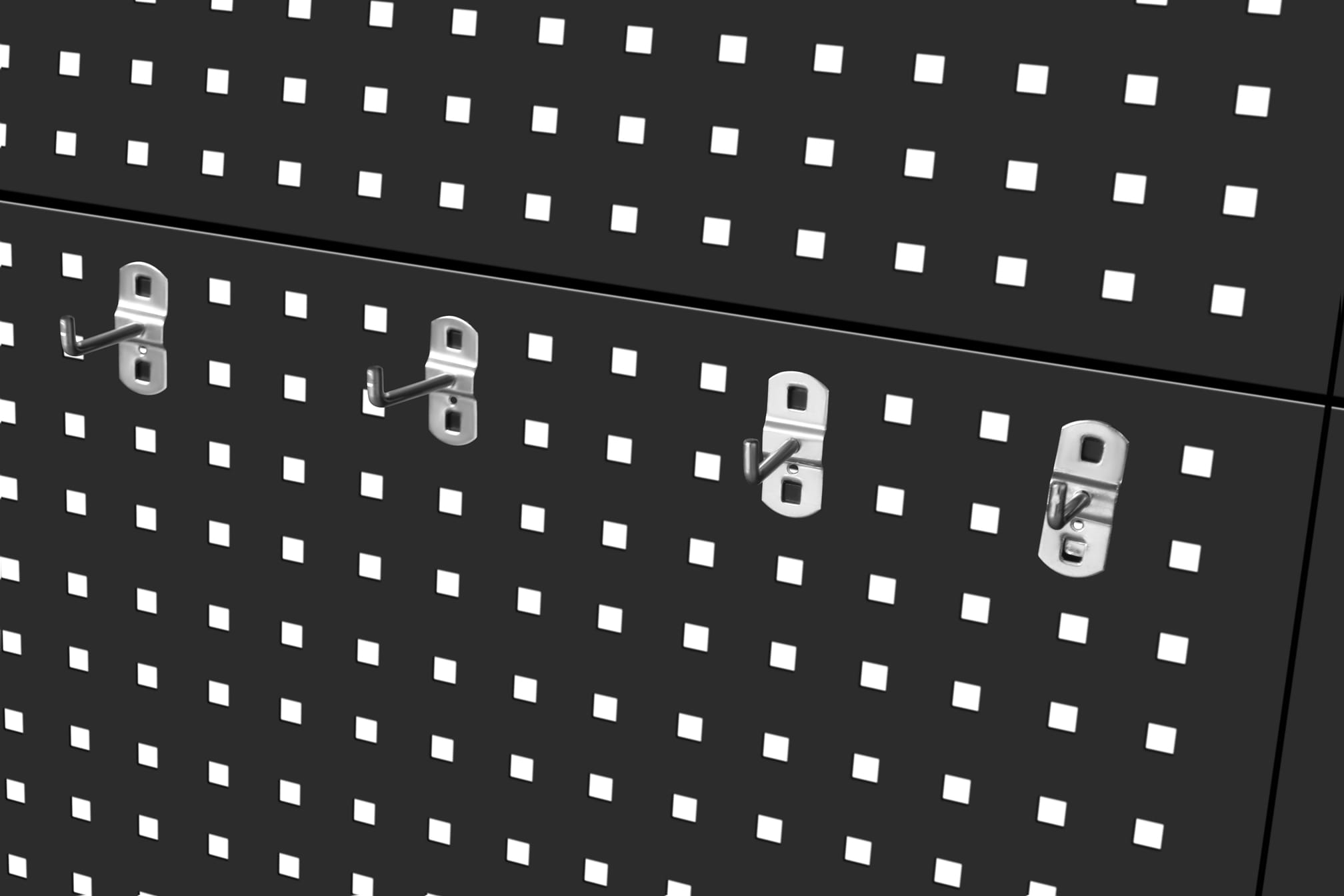 ✅ Perforowane tablice narzędziowe – 6 paneli z 25 haczykami
